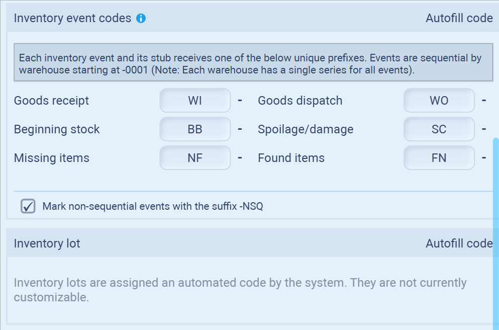 Inventory Lot Codes