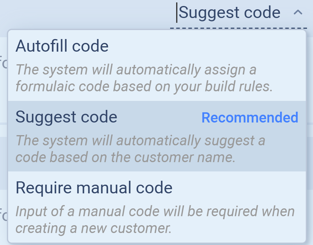 You can choose how these codes are created using three generation modes: Autofill, Suggest, or Require manual code.