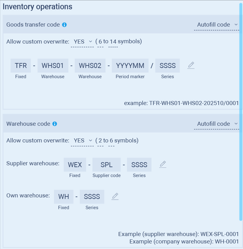 Allow custom overwrite: YES by default — allows manual adjustments if warehouse names follow specific regional or entity-based naming rules.