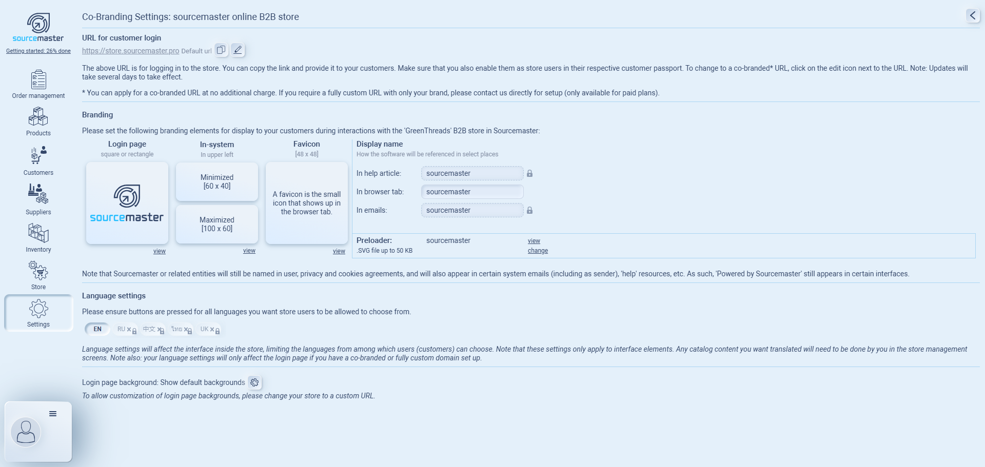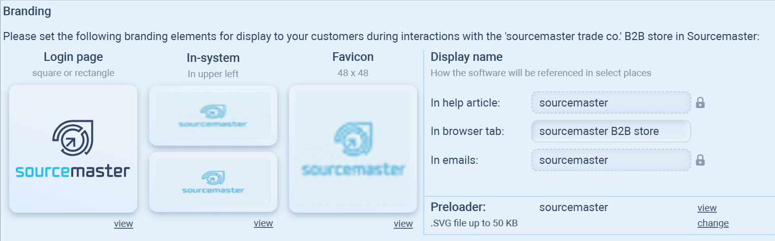 You can upload company logos, change the favicon, and edit the display name.