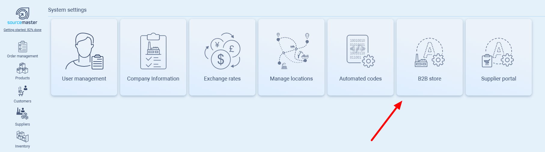 Accessing the B2B Shop Settings