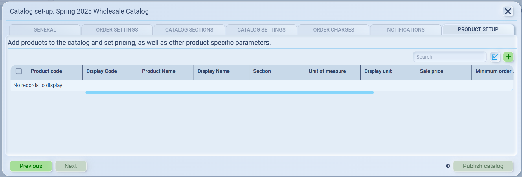 This opens the catalog setup interface
