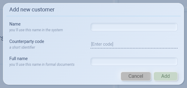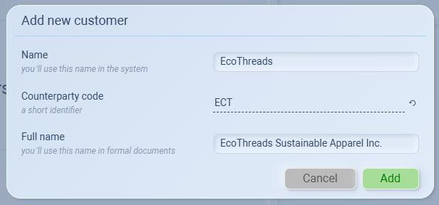 Counterparty code – A short identifier for the customer.
