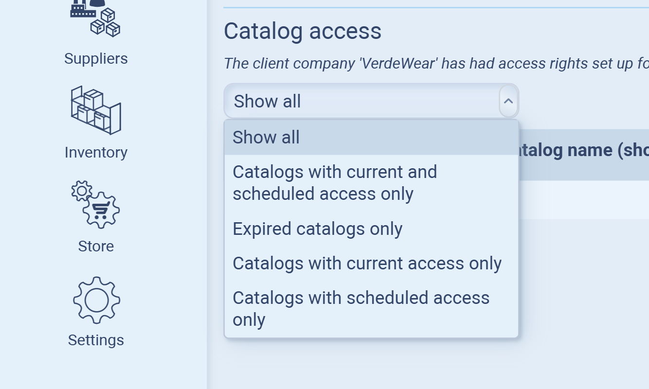 Use the dropdown menu to select which catalog you want the client to see.