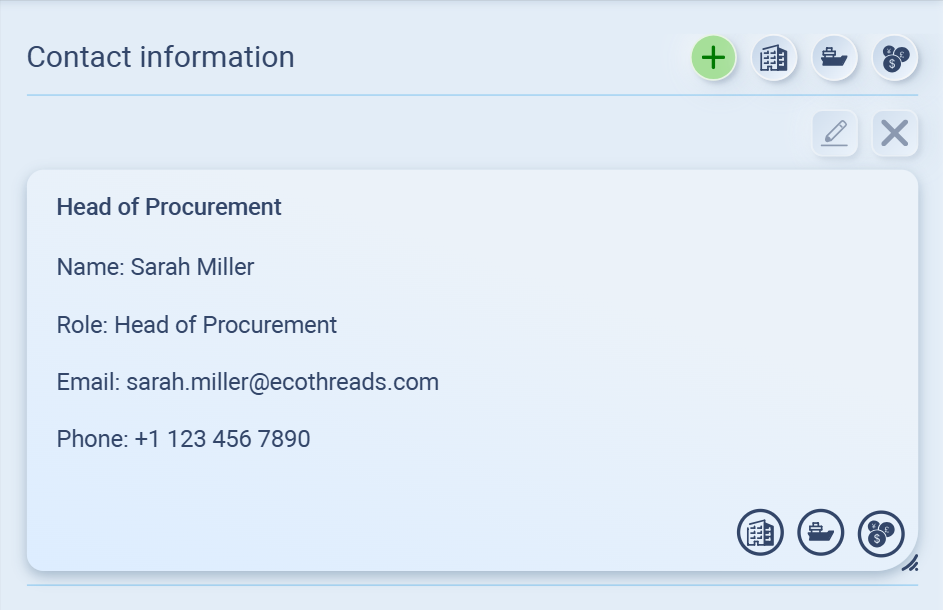 This way, your sales and purchasing teams always know who to reach for orders or negotiations.