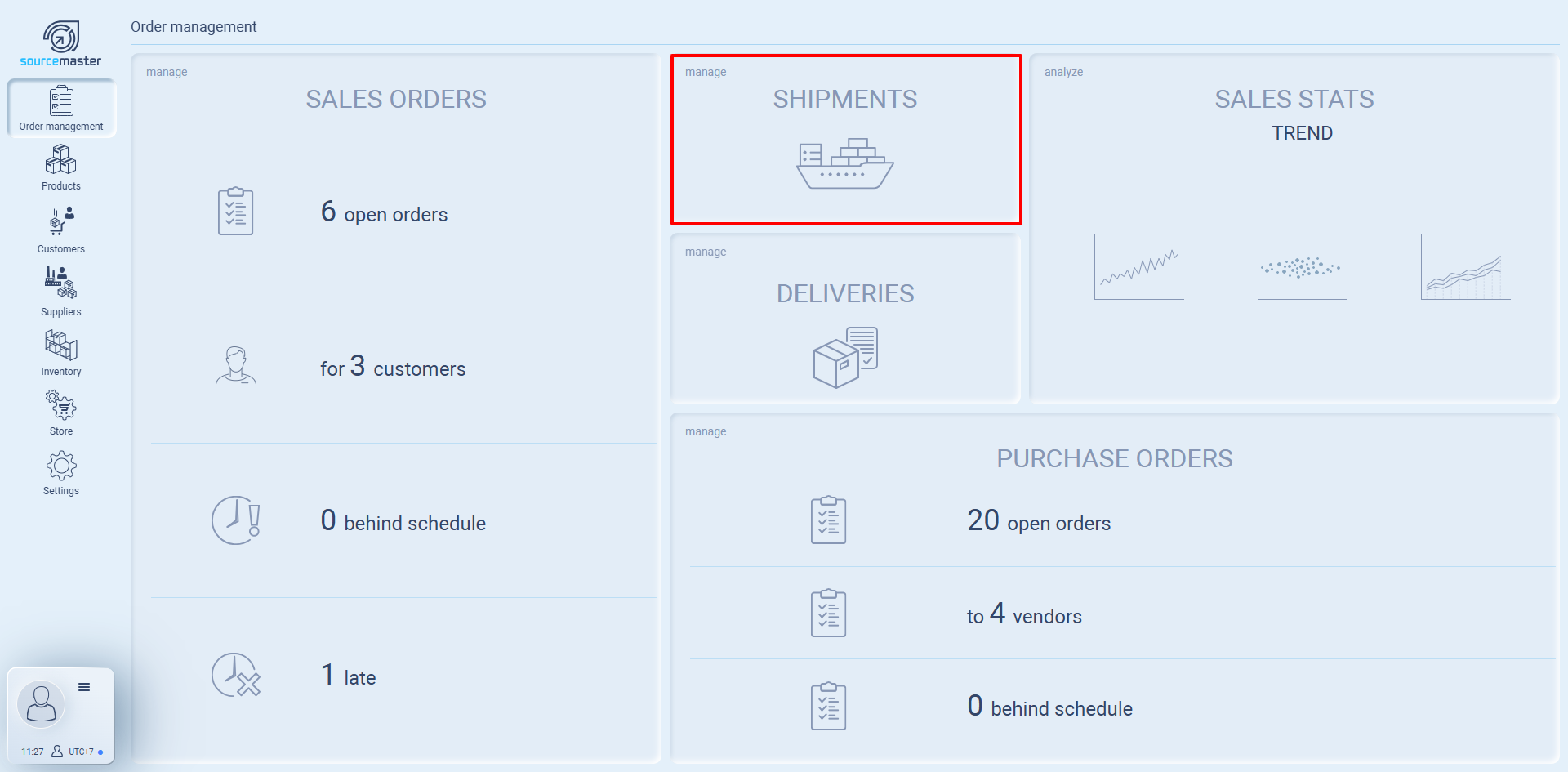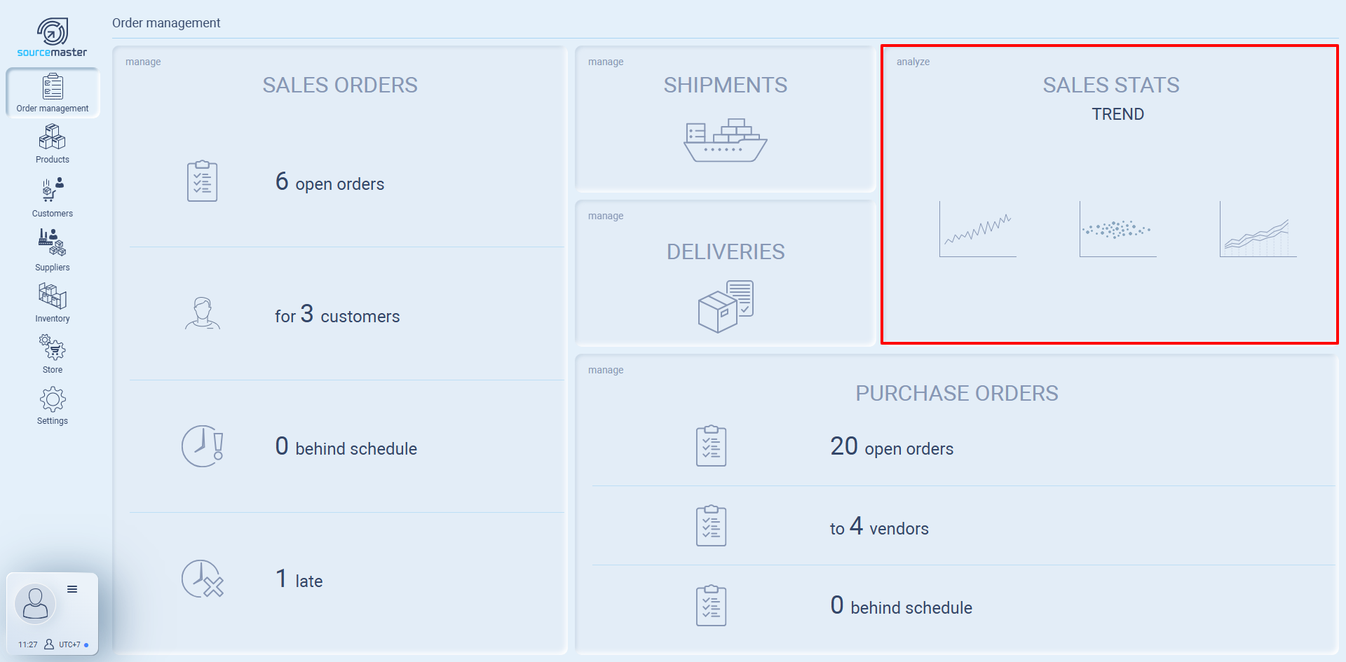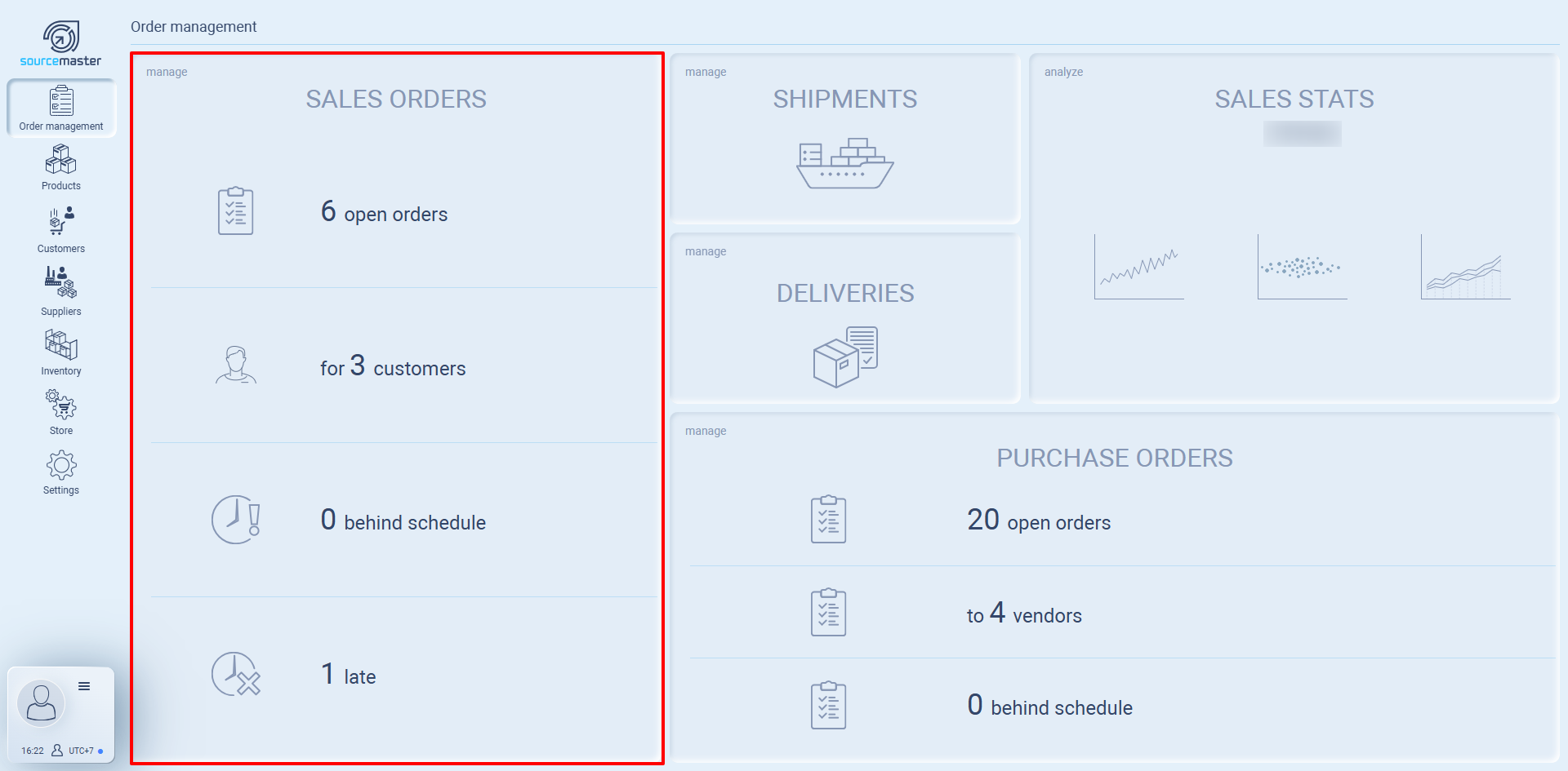 On the main Sales Orders card, you’ll see quick stats: