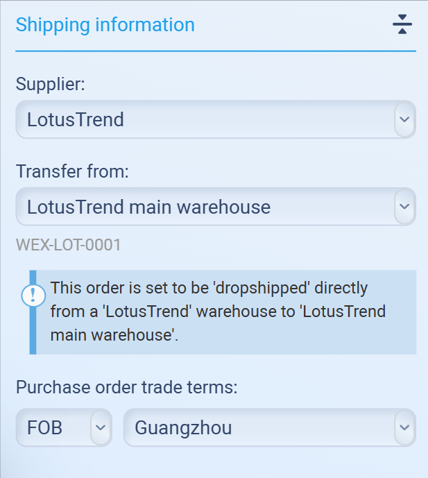 Use this if you don’t handle warehousing and want suppliers to fulfill the order directly.