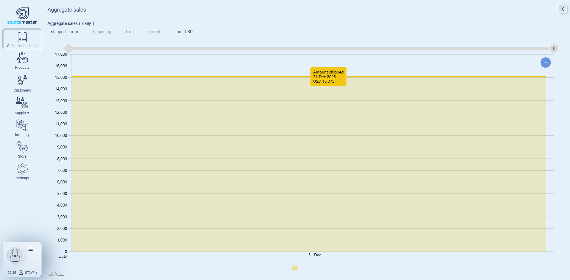 Sales Stats shows how your sales move over time so you can spot growth, seasonality, and outliers. In Sourcemaster (SM), these charts read directly from your Sales Orders and Deliveries, so you’re always looking at live numbers.