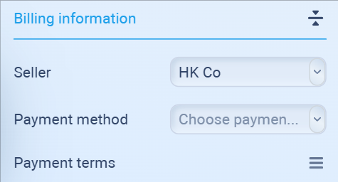 Select the selling entity (must be created first in your Sellers or Company setup).