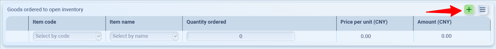 Add line items with the green + (or import via the drop-down next to it).