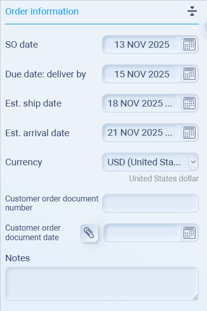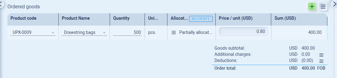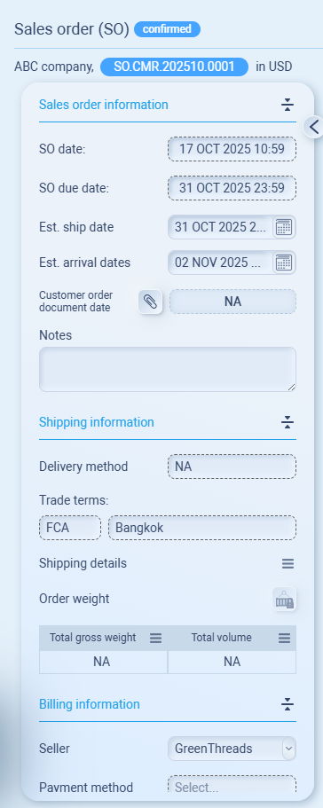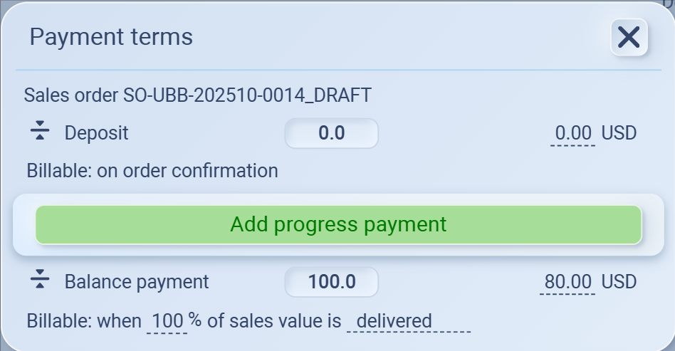 You’ve created a new Sales Order. It’s still in draft mode, so you can edit: