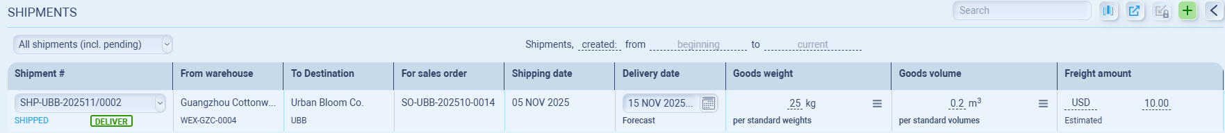 You’ll see the shipment record linked to your SO, tagged as Shipped.