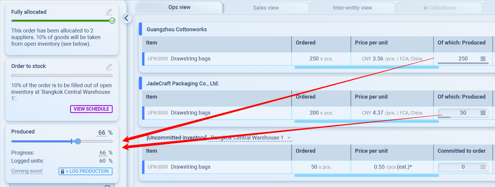 Your shipment will then be recorded and reflected in the order’s Shipping progress under the Ops view.