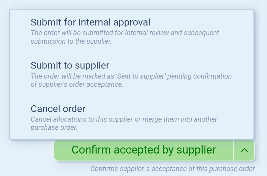 Cancel order – Cancel the entire order if it’s no longer valid or needs to be merged into another.