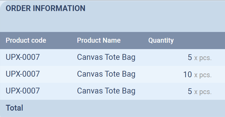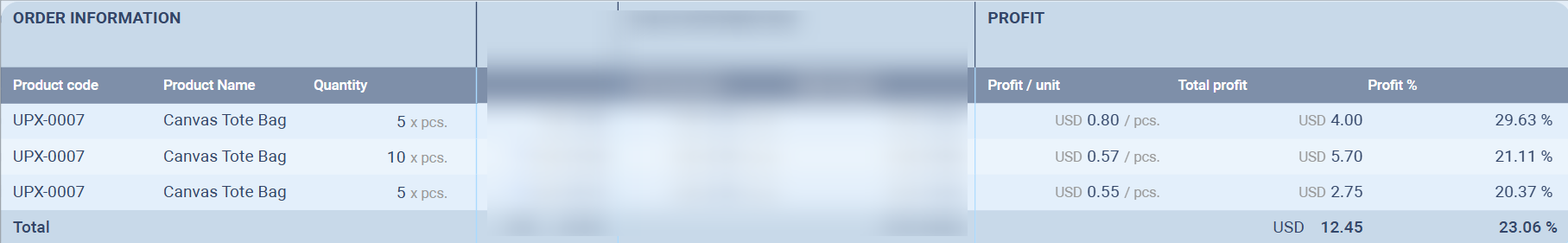 Example: You ordered item A 10 pcs. x $5 each and 2 pcs. x $25 each.