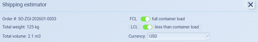 | Goods Weight & Volume | Auto-calculated from the order’s product data. |