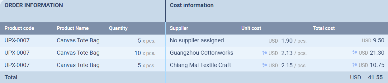 This setup is ideal when you source from several suppliers or mix supplier products with your own warehouse stock to fulfill one customer order.