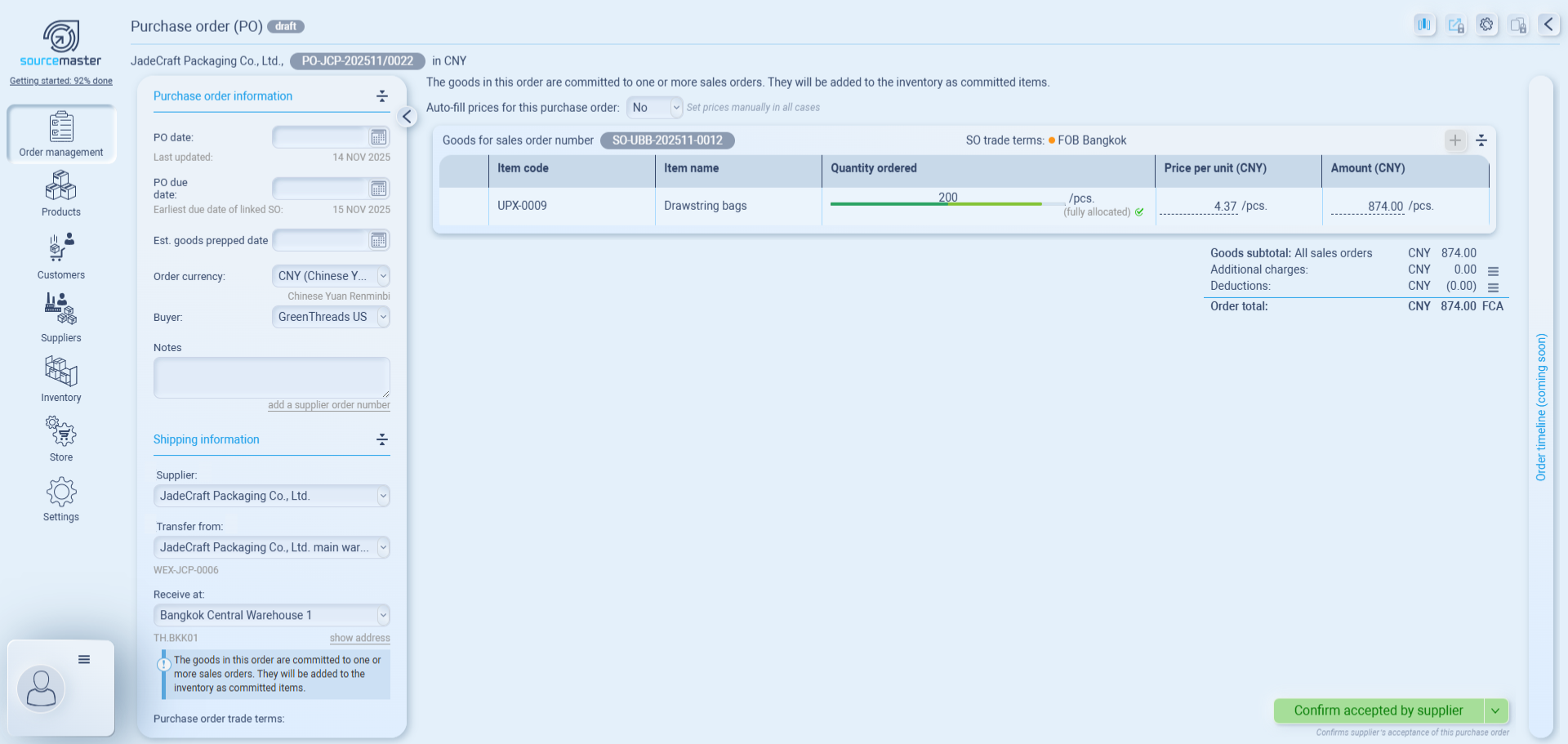 Your sourcing team then books production slots or reserves stock from suppliers.