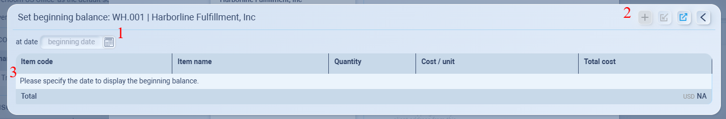 Set your starting inventory for this warehouse, by clicking Add stock button