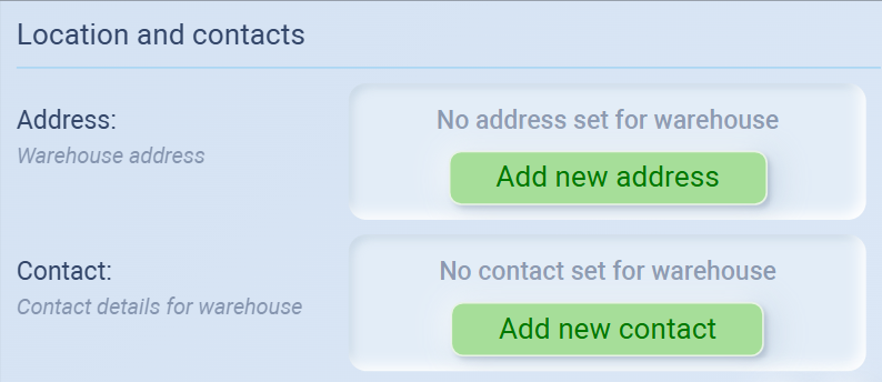 You can add address and contact for this warehouse here